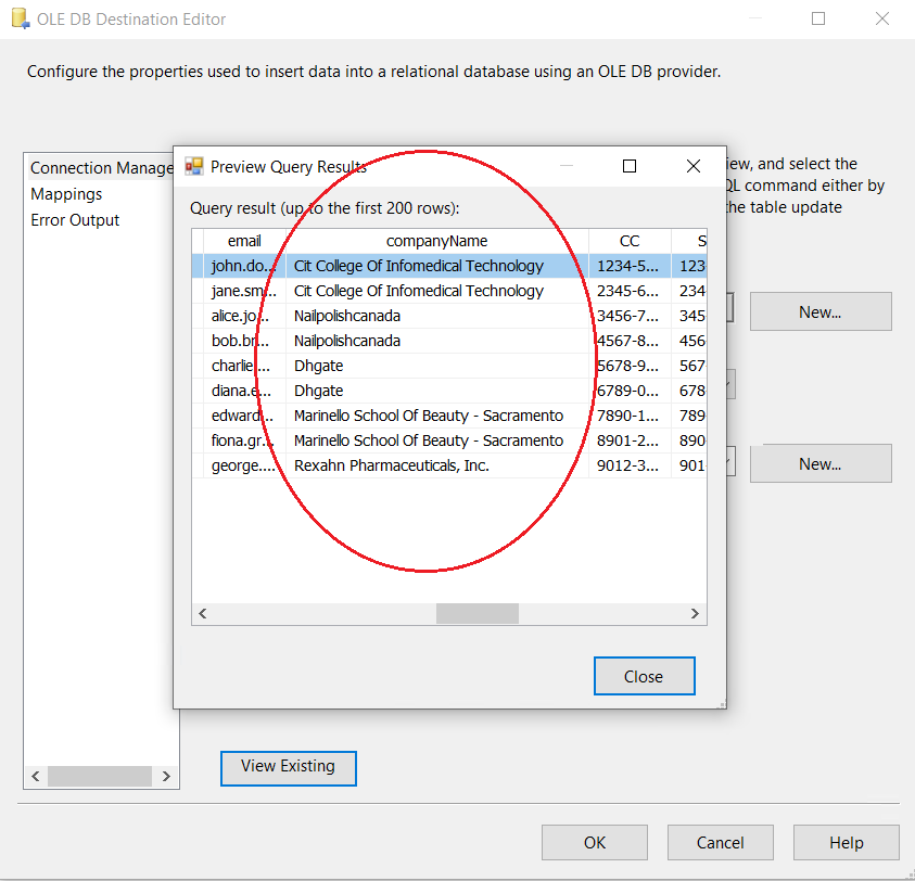 8. Now, all the configurations are complete for the valid values. You can run the package with the Company Name Dynamic Data Masking component, and see the results of data masking: