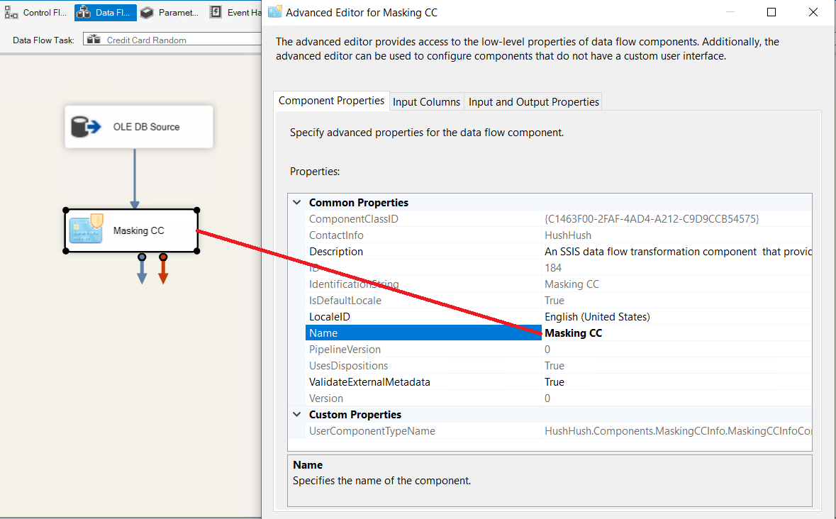 2. Drag and Drop Credit Card masking component, connect the source and the Credit Card component with the source's precedence constraint: