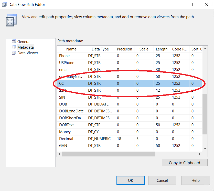 3. Now, the precedence constraint (the blue arrow) passes proper meta-data to the MaskingCreditCard component. If you click on constraint, you will see: