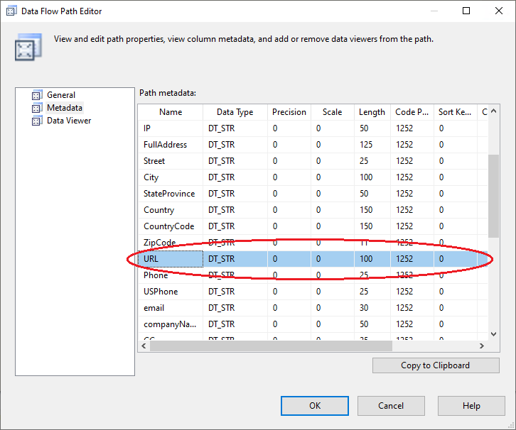 3. Now, the precedence constraint (the blue arrow) passes proper meta-data to the URL component. If you click on constraint, you will see: