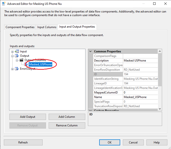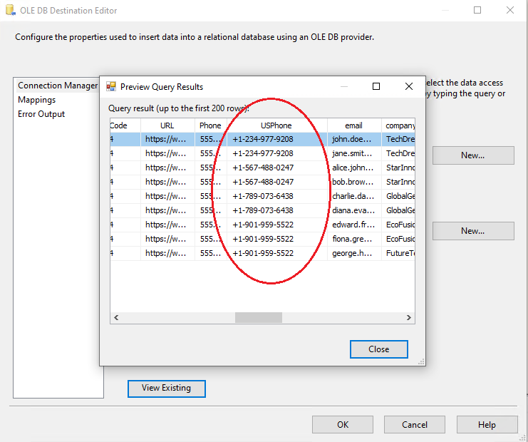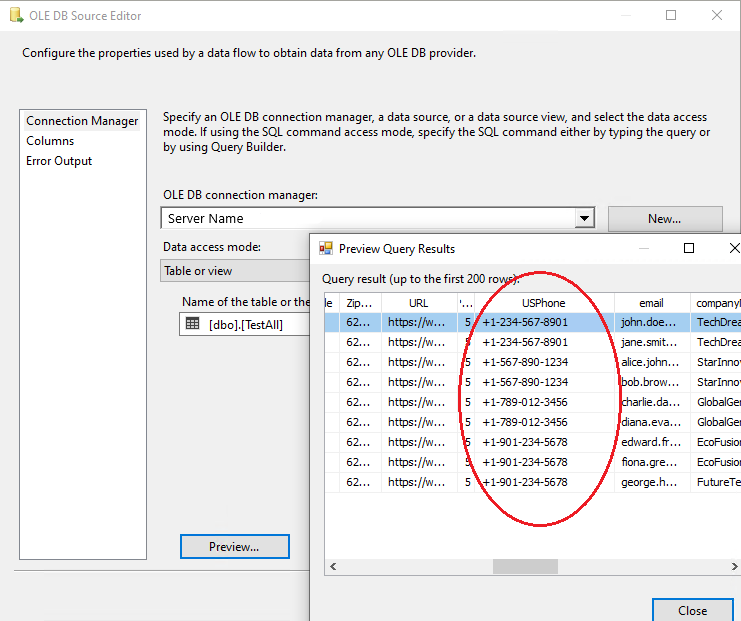 8. Now, all the configurations are complete for the valid values. You can run the package with the US Phone Nu Dynamic Data Masking component, and see the results of data masking: