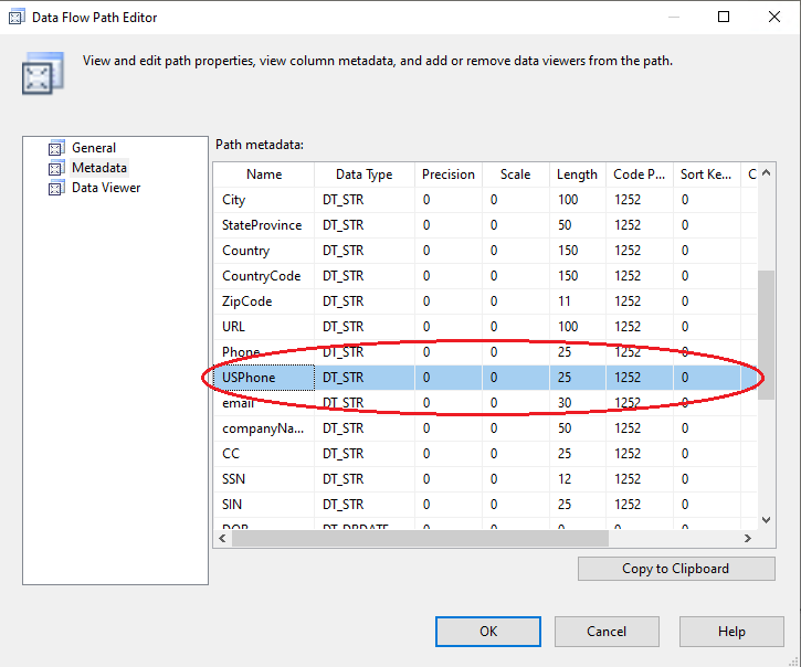 3. Now, the precedence constraint (the blue arrow) passes proper meta-data to the US Phone Nu Dynamic component. If you click on constraint, you will see: